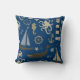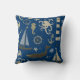 beige and white ocean life beach theme blue pillow with light house, anchor, boat, seahorse, octopus and more