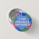 Let people know your special needs with this botanical badge by JessicaAmber! Features the slogan 'I Am Visually Impaired' in a bold font, surrounded by a tropical leaves, on a blue background. You can edit the text as needed. ⭐ For more useful blindness accessories, visit my store Zazzle.com/JessicaAmberArtist ⭐ For custom orders, message me on Zazzle