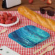 A wonderful and vibrant watercolor illustration in varying shades of blue of ocean waves and faux glitter sparkles set behind templates for your personalized wording. These are ideal for a beach wedding; tropical island destination picnics or for any sea | ocean business that offers their guests meals as part of their excursions.