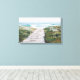 A lovely photo of a boardwalk leading down to the ocean beach. Blues, greens, and grays. Suitable for any room in your home or office.