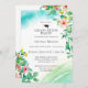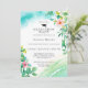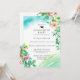 Beautiful watercolor sandy beach and sky with island botanical flowers and foliage arrangements, framed graduation party invitation.