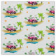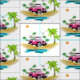 A colorful Caribbean beach buggy is the center focus of this fabric design. It will inspire an endless variety of projects to remind one of happy Summer days spent on the beach or times cavorting in the islands.