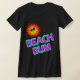 Beach Bum funny saying in distressed driftwood letters in bright teal and ocean blue colors with a sandy yellow outline on a background of tropical palm trees. Perfect for lounging around the beach, pool or backyard. Click Customize It to add your name or message, change background colors and more.
