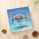 A binder personalized with your name. Designed with a tropical image of a turquoise sea with a white sandy beach and a single thatched beach umbrella. Typography says Beach Bum.