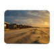 Rectangular photo magnet with a row of beach cabins on the North Sea beach of Kijkduin in the Hague during a nice sunset in the Netherlands.