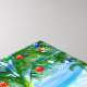 Happy Holidays from the warm sandy beaches of your favorite tropical island beach. Palm tree decorated with Christmas ornaments and lights, with a retro surfboard leaning against the Christmas tree.