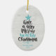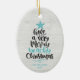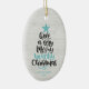 Fun and modern beach Christmas ornament features hand-lettered typography "Have a very merry beachy Christmas." Personalize with your and family name and year.