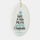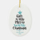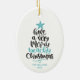 Fun and modern beach Christmas ornament features hand-lettered typography "Have a very merry beachy Christmas." Personalize with your and family name and year.