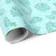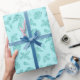 This beautiful aqua blue coastal Christmas wrapping paper features a pattern of glitter seahorses, seashells, and holly sprigs for a festive beach holiday design.