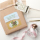 Beach-themed Christmas return address envelope seals. Starfish and sand dollar design and sandy beach background with printed, green text for names and address. Larger 3 inch label size shown with smaller stickers available.