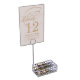 This beach design features seashell clams. Beach themed wedding design with a clams background and white text. White lines creating ribbons are positioned above and below the text. This is the perfect beach destination wedding design ideal for all seasons. Elegant beach wedding table number or place card holder design with modern elements. Matching wedding invitations and other stationery items are also available.