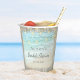 These rustic beach coastal bridal shower paper cups feature a scene of aqua blue ocean waves crashing against the beach, with a frame of weathered wood, and string lights accenting the top. Check out the collection for matching paper plates and napkins, and other table décor.
