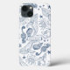 Cute personalized phone case in navy blue and white sea creature ocean-inspired design for beach lovers.