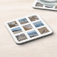 Gorgeous coasters for any beach lover with a collage of 6 photographs of pebbles, sand and sea.