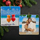 Christmas ornament for newlywed couples. Beach themed, with two, frosty cocktails on one side, and sea view on the other. Your text over the cocktails could be your names, along with "First married Christmas", "First Christmas as Mr. & Mrs.", etc.. On the other side of this square ornament, upload a photo to a brushstroke frame and include the year date.