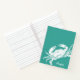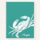 Cool blue notebook printed with distressed look crab design. On the front is a large single crab, and space for you to add your name. Simply hit CUSTOMISE and change the text to suit. On the rear of the notebook is a pattern of weathered look crabs. Blue and white seafood print notebook. Nautical notebooks.