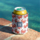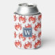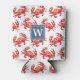 This fun summer can cooler design features a watercolor crab pattern and personalized monogram initial.