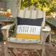 The picture doesn’t show the design but this pillow is adorable. The colors are bright and fresh, the fabric is great for indoor/outdoor use. Beautiful colors and picture of flip flops. Font is great.