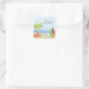 This Christmas holiday rounded square sticker is a cute way for a dentist to say Happy Holidays to your clients. It features a tooth on the beach holding a surfboard. There is a festive palm tree on the left with ornaments hanging from the branches. Below, there is two gifts along with a beach ball. Some elements in this design are GRAPHICS by JW Illustrations © JESSICAWEIBLE.COM