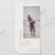 These 4" x 9" save the date cards feature a minimalist design in robin egg blue and blush letters on a creamy background with placeholders on the back for the engaged couple names, wedding date, and venue information and your favorite photo!