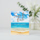 Watercolor seascape of a beautiful day for a wedding. Glitter-y copper typography for title, with completely customizable info.
