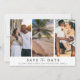 The perfect save the date for the couple planning a beach destination wedding. Share your engagement photos and upcoming destination wedding plans with family and friends. Customize these modern wedding save the date card with your photos, names, wedding date and the location. The center photo can be changed to one of your photos or be left as it is.