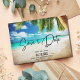 Tropical blue waters beach wedding save the dates for your destination wedding. This save the date can be used for any beach location of your choice, simply change the wording on the template to fit your needs. Customize with your names, wedding date and location. Add your photo to the backside of the card.