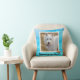 Double-sided photo pillow to remember a favorite dog who loved the beach. Background is tropical blue water, with a white frame for the square photo. Yours can be any orientation with the subject in the center, and it should fit nicely. Make sure your photo is large enough to fit the big photo template without becoming pixelated. A single junonia seashell decorates the bottom corner with "Forever in our hearts" text. Customize with your own wording if you wish. Both sides of this keepsake pillow will be the same.