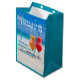 Wedding welcome, or favor, paper bags with customization. Frosty drinks on beach sand design with two places for your text. Names of the bride and groom, with wedding date, at the top. Add a little “thank you” to guests also, if you wish. Bag color is sea blue-green with modern white printed font and script in blue-green. You may change the bag size, but text will not fit on all options.