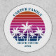 Cool family vacation patch for your tropical island cruise. Features beautiful palm trees in front of a pretty pink beach sunset. Perfect customized keepsake for your summer trip to the sea.