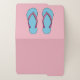 An illustration of a pair of pink and blue beach flip flops. It's summertime! Let's take a break and have some fun under the sun. Aren't you excited to prepare all your stuff for vacation? Don't forget your flip flops.