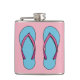 An illustration of a pair of pink and blue beach flip flops. It's summertime! Let's take a break and have some fun under the sun. Aren't you excited to prepare all your stuff for vacation? Don't forget your flip flops.