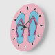 An illustration of a pair of pink and blue beach flip flops. It's summertime! Let's take a break and have some fun under the sun. Aren't you excited to prepare all your stuff for vacation? Don't forget your flip flops.