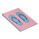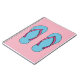 An illustration of a pair of pink and blue beach flip flops. It's summertime! Let's take a break and have some fun under the sun. Aren't you excited to prepare all your stuff for vacation? Don't forget your flip flops.