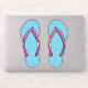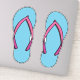 An illustration of a pair of pink and blue beach flip flops. It's summertime! Let's take a break and have some fun under the sun. Aren't you excited to prepare all your stuff for vacation? Don't forget your flip flops.