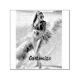 Bikini beach girl model standing at the water's edge wearing a ponytail to customize with your own greeting, name, message, etc