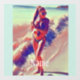 Bikini beach girl model standing at the water's edge wearing a ponytail to customize with your own greeting, name, message, etc