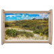 The original artwork by ZoeSPEAK on this natural wood finish Serving Tray is a view of beach greens, sea oats and all the other beautiful plants which grow in the sand and help to strengthen our coastlines. The blue sky is filled with puffy white clouds, and in the distance, people can be seen at the water’s edge.