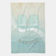 This kitchen towel in the soft colors of sea and sand allows you to easily add your own name and text using the provided template. The image of two Adirondack chairs on a distressed, watercolor background is highlighted by a wave accent in aqua and white. Search ID623 to see coordinating seaside elements and additional products with this design.