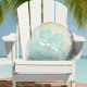 This round throw pillow in the soft colors of sea and sand allows you to easily add your own name and text using the provided template. The image of two Adirondack chairs on a distressed, watercolor background is highlighted by a wave accent in aqua and white. Search ID623 to see coordinating seaside elements and additional products with this design.
