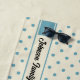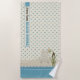 Personalized Beach House Beach Towel | A pretty beach scene on a polka dot beach towel is personalized with your family name. All text is editable so even "beach house" can be changed to something else if it better suits your needs. Pretty blue polka-dots on a creamy background. An Adirondack chair sits on a sandy beach by the water. A butterfly and a cluster of pussy willows add the finishing touch.