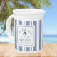 Introducing our Beach House Blue Stripes Coastal Farmhouse beverage pitcher. Featuring watercolor illustration of orchid and dried palm leaves with navy blue strips as background. Suitable for Rental vacation beach house or coastal cottage.