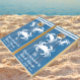 The seaside inspired design will have you feeling like you're at the beach, with it's faux blue wood background and white crabs design.