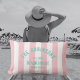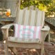 Beach House Custom Name Pink Cabana Stripe Lumbar Pillow