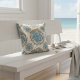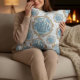 This pillow design has a mix of diamonds, triangles, and little details that flow together nicely. If you look closely, you’ll even spot fish shapes hidden in the pattern giving it a fun, subtle nod to nature. The soft blue and beige colors feel calm, kind of like water gently moving. It’s got that perfect mix of neat and natural, with a hint of vintage and a modern twist. It brings an ocean-inspired feel to any space.