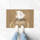 Rustic Burlap background design. Tropical Fish stamp solid graphic. Custom family name in bold sans serif font and chic script family typography. All text is adjustable. Beautiful design for beach house, vacation home, boat, or nautical themed home decor.
