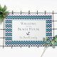 Welcome your guest at your beach or lake house with our door mat adorned with a blue, aqua and white zig zag print, welcome to our beach house and your family name in soft hand scripted lettering. View our full line of custom home products in our Zazzle store.