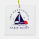 Beach House Nautical boat Sunset navy blue Ceramic Ornament