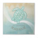 This ceramic tile design in the soft colors of sea and sand allows you to easily add your own name and text using the provided template. The simple turtle image on a distressed, watercolor background is highlighted by a wave accent in aqua and white. If you aren't fortunate enough to have a beach house or cottage, just change the text on this fun design to whatever suits your needs. Search ID623 to see coordinating seaside elements and additional products with this design.