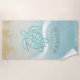 This beach towel design in the soft colors of sea and sand allows you to easily add your own name and text using the provided template. The simple turtle image on a distressed, watercolor background is highlighted by a wave accent in aqua and white. If you aren't fortunate enough to have a beach house or cottage, just change the text on this fun design to whatever suits your needs. Search ID623 to see coordinating seaside elements and additional products with this design.